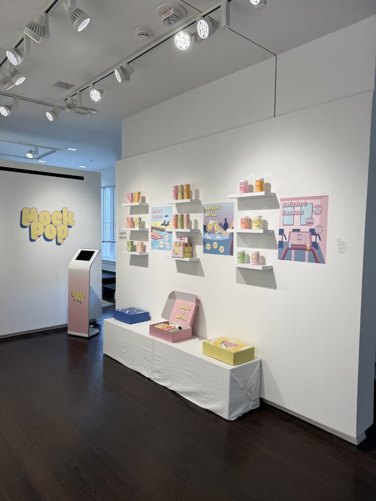 MockPop is a branding project that explores the connection between design, branding, and the marketing industry. These designs combine health and wellness with social environments through mocktail flavored drinks to enjoy in any setting. This series uses intricate packaging and interactive PR to reach its target audience of adults while focusing on maintaining a positive outlook on health. This brand takes inspiration from the public relations industry to bridge the gap between health and social settings. The installation that represents this series combines digital art and graphic design represented through typography and industrial materials, to create an installation that is eye-catching and can be a positive addition to anyone’s health journey. MockPop showcases my personal style of bright and pastel colors as well as an 80s-inspired influence throughout the packaging and PR to further reach its target audience.
